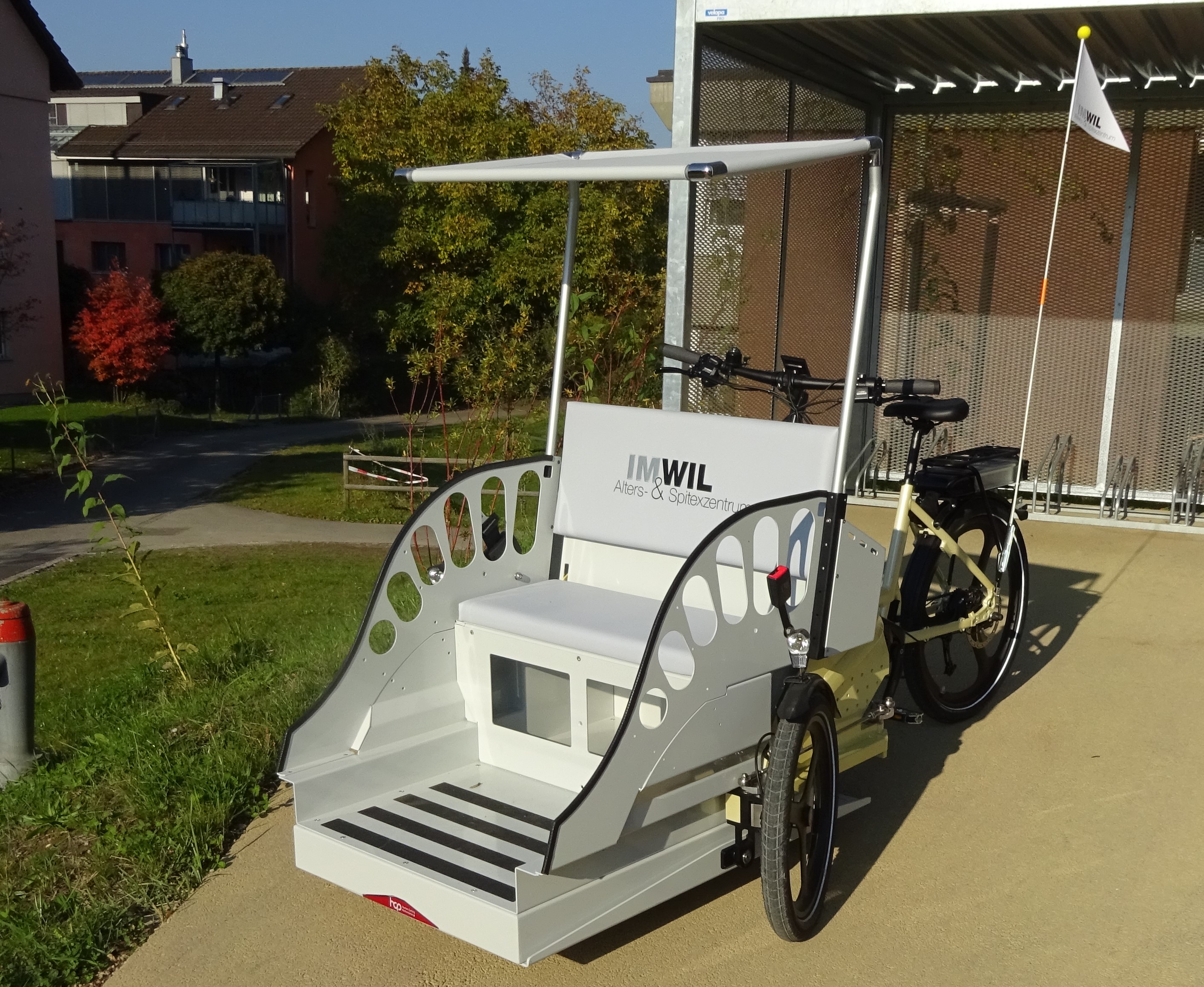 Viele Bewohnende haben auch nach ihrem Eintritt ins IMWIL Alters- und Spitexzentrum das Bedürfnis, das Gelände zu verlassen und die Umgebung zu entdecken. Dafür stehen im IMWIL zwei elektrisch angetriebene Rikschas zur Verfügung. Es handelt sich dabei um zwei e-Bikes, welche zur einer Rikscha umgebaut wurden, indem auf einem Bike eine Plattform mit einer Sitzbank für zwei Personen und auf dem anderen ein Ladefläche für einen Rollstuhl aufgerüstet wurde.