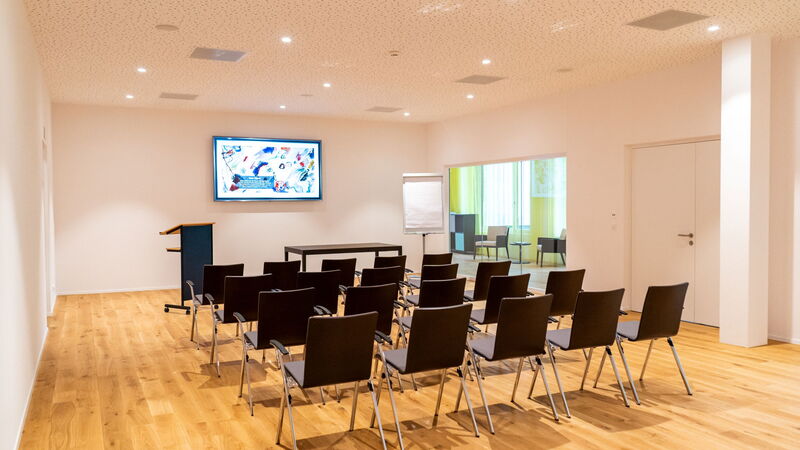 Bewegen Sie sich auf unserem 3D-Rundgang durch eine unser Sitzungszimmer Hermikon.